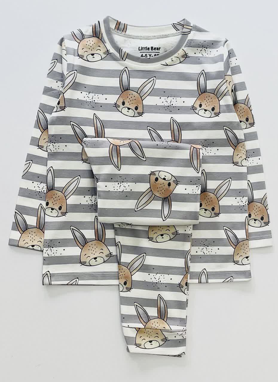 خانه بلوز شلوار بچگانه ست بلوز شلوار خرگوش طوسی سفیدLittle Bear