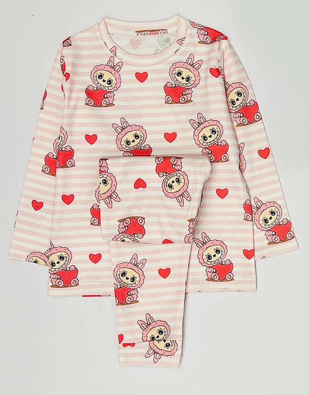خانه بلوز شلوار بچگانه ست بلوز شلوار لبوبو راه راه صورتیLittle Bear