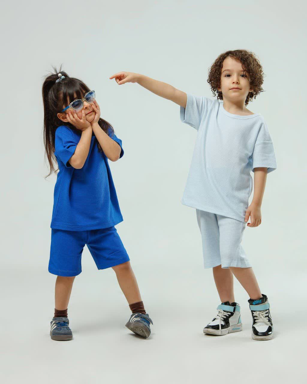 ست تیشرت شلوارک بیسکوییتی آبی کاربنی